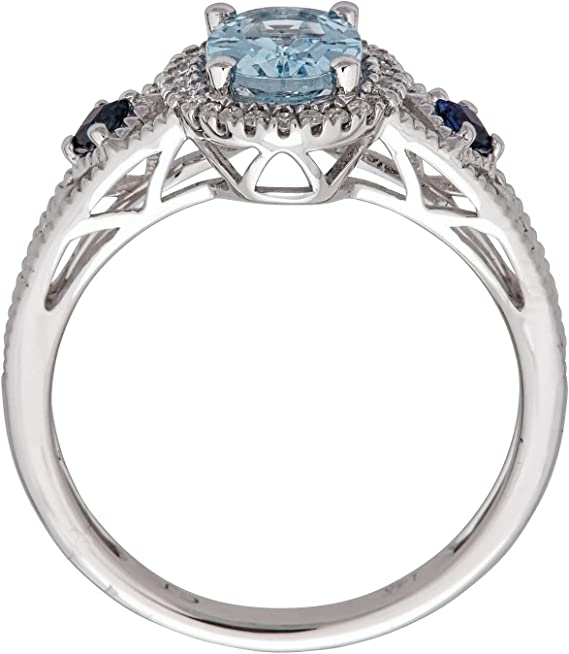 Gin and Grace 14K White Gold Genuine Aquamarine Ring with Diamonds for women | Ethically, authentically & organically sourced (Oval-cut) shaped Aquamarine hand-crafted jewelry for her | Aquamarine Rin