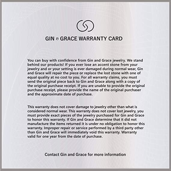 • EASY CLEAN: Gin & Grace jewelry are made up to last forever; however, be sure to take proper care of your jewelry. To clean this piece, use warm water, a mild soap, and a soft bristled brush if needed. Avoid contact with chlorine and other harsh chemicals to keep it shining forever.