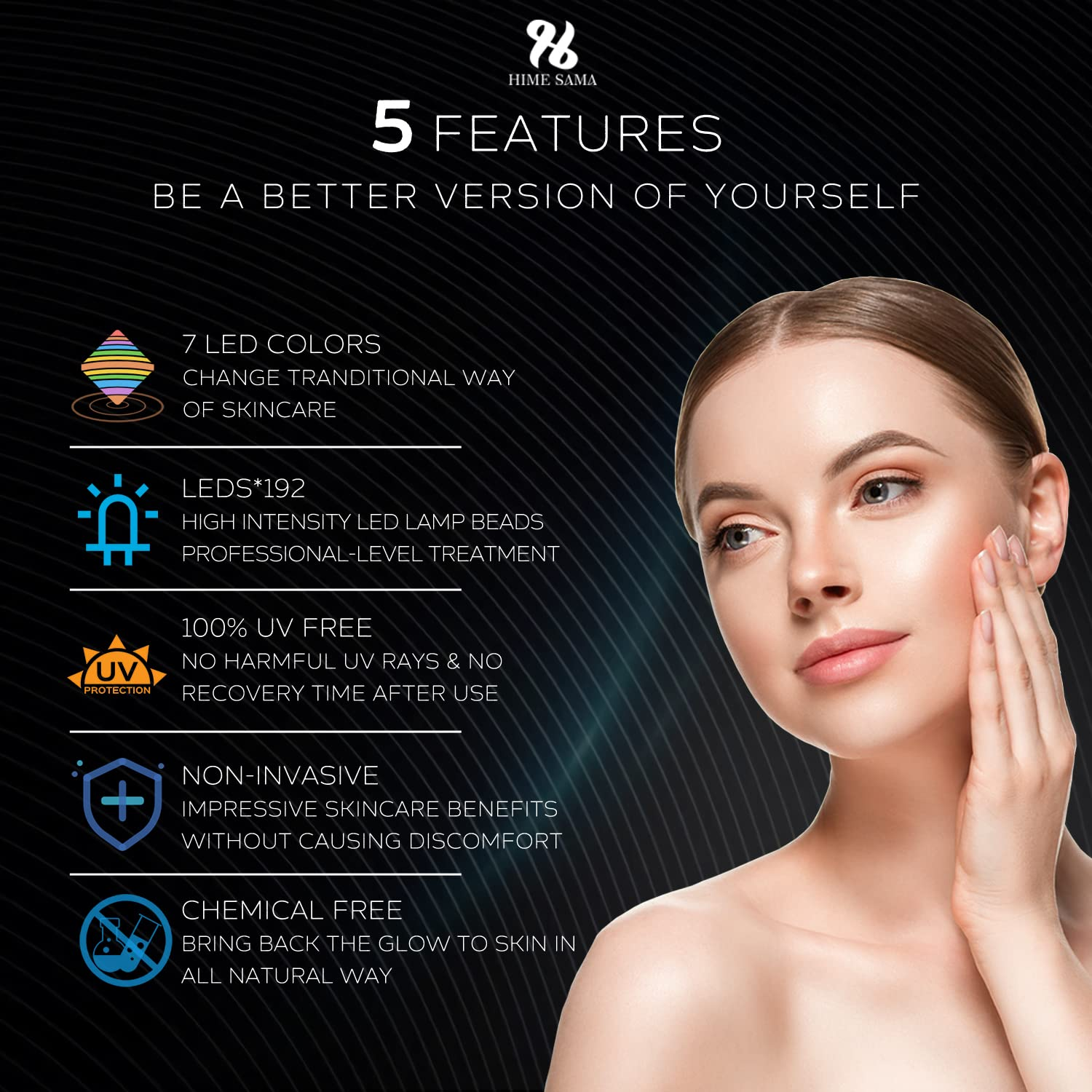 HIME SAMA LED Face Mask for Skincare - Pro 7 Color LED Skincare Mask, Delay Skin Aging, Maintain Skin Firmness and Elasticity, Professional Skin Care, Higher Safety,Portable for Home and Travel Use
