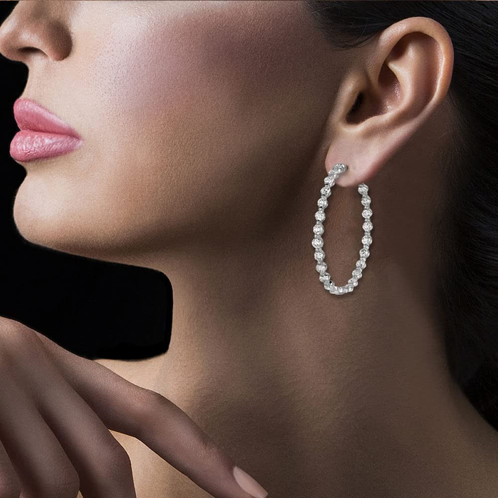 14K White Gold 10.00ctw. Diamond Inside/Out Hoop Earrings