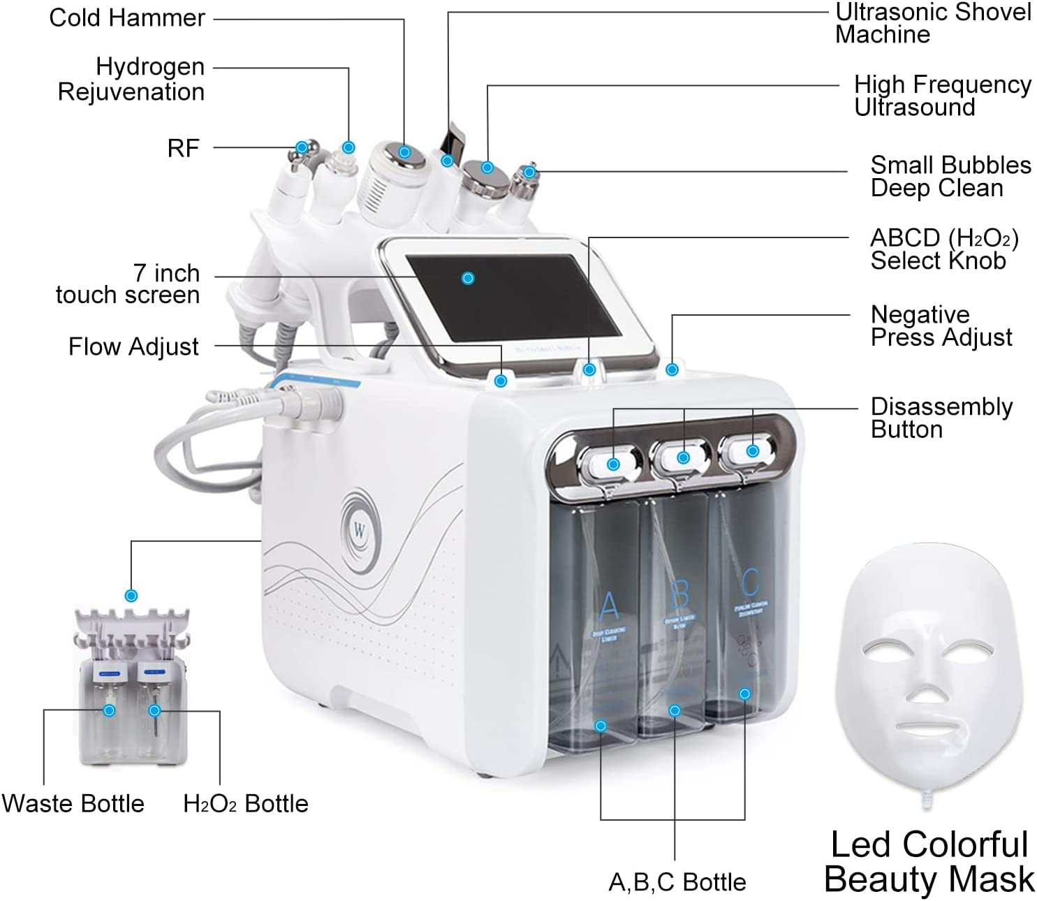 ✅PROFESSIONAL BEAUTY - Once, it is equivalent to using 8 hydrating masks. 7 In 1 face care machine, with 6 heads, 1 facial mark. Different handle for solving a variety of skin problems, make your skin tender and beautiful.